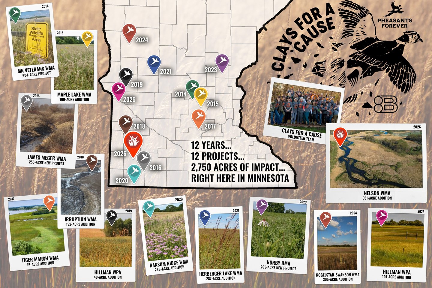 As dedicated shooters and hunters, we decided to organize Clays for a Cause, a fundraiser shoot, lunch and silent auction which raises money for the purchase and restoration of public hunting land. All raised proceeds go directly towards land in Minnesota—and we've been able to raise over $210,000 combined over our last eleven events, helping to create over 3,000 acres of permanently protected land.